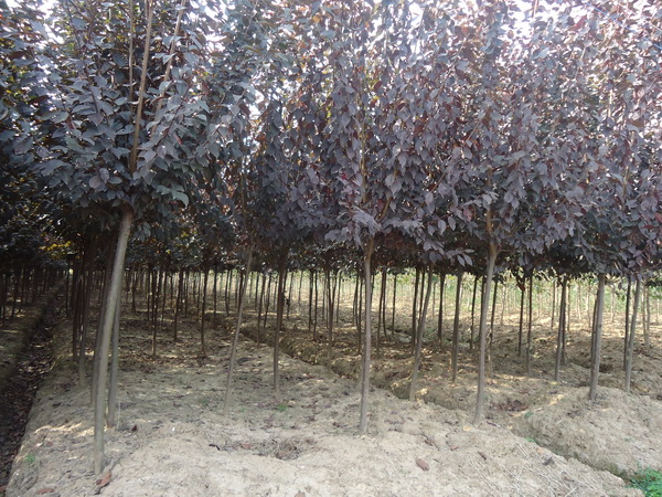 紫葉李和紅葉李其實(shí)是一個(gè)樹種,只不過它們?cè)诩藿拥臅r(shí)候用的砧木不同,而導(dǎo)致它們的葉片略有區(qū)別,紫葉李用的是桃砧,而紅葉李用的是杏砧,紫葉李葉片較大、顏色較深,紅葉李葉小而薄顏色較淺,在應(yīng)用上它們的用途也都是一樣的,觀賞性也一樣,因此我們都把它們當(dāng)作一個(gè)樹種。