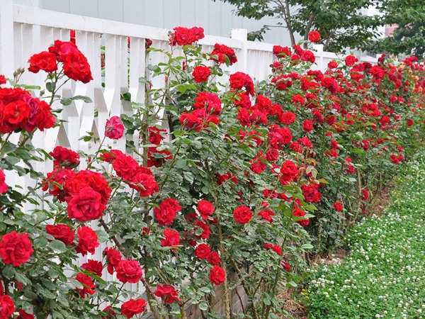 藤本月季品種繁多,有安吉拉、小女孩、達(dá)芬奇、龍沙寶石、西方大地、御用馬車、大紅袍、火焰舞等品種。