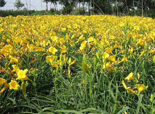 金娃娃萱草是萱草人工培育的園藝品種,金娃娃萱草具有花期長(花期5-10月,6-7月盛花期,8-11月為續(xù)花期,單花花期在5-7天),花大、花朵金黃色,與期綠色葉叢相得益彰,觀賞價值高,加之金娃娃萱草適應(yīng)能力強既耐熱也耐寒、栽培管理簡單,常用于公園、廣場、小區(qū)的綠化美化。